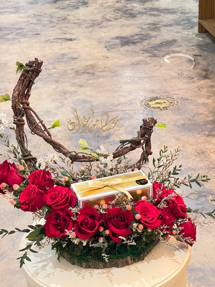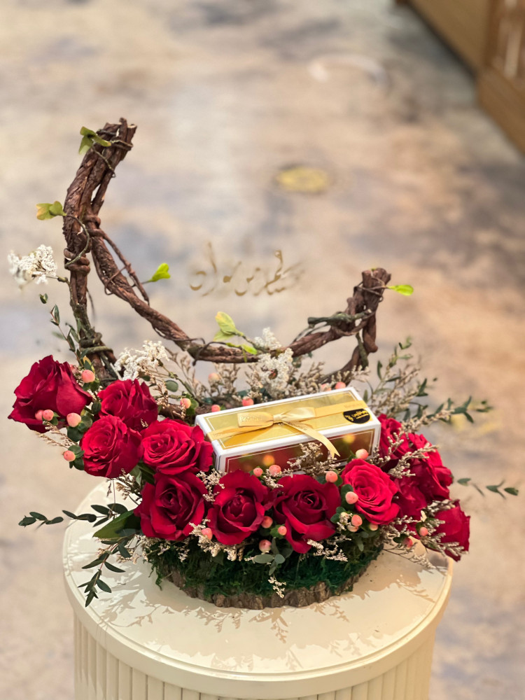 هدية العيد ورد طبيعي مع نصف كيلو تشوكلت البستاني