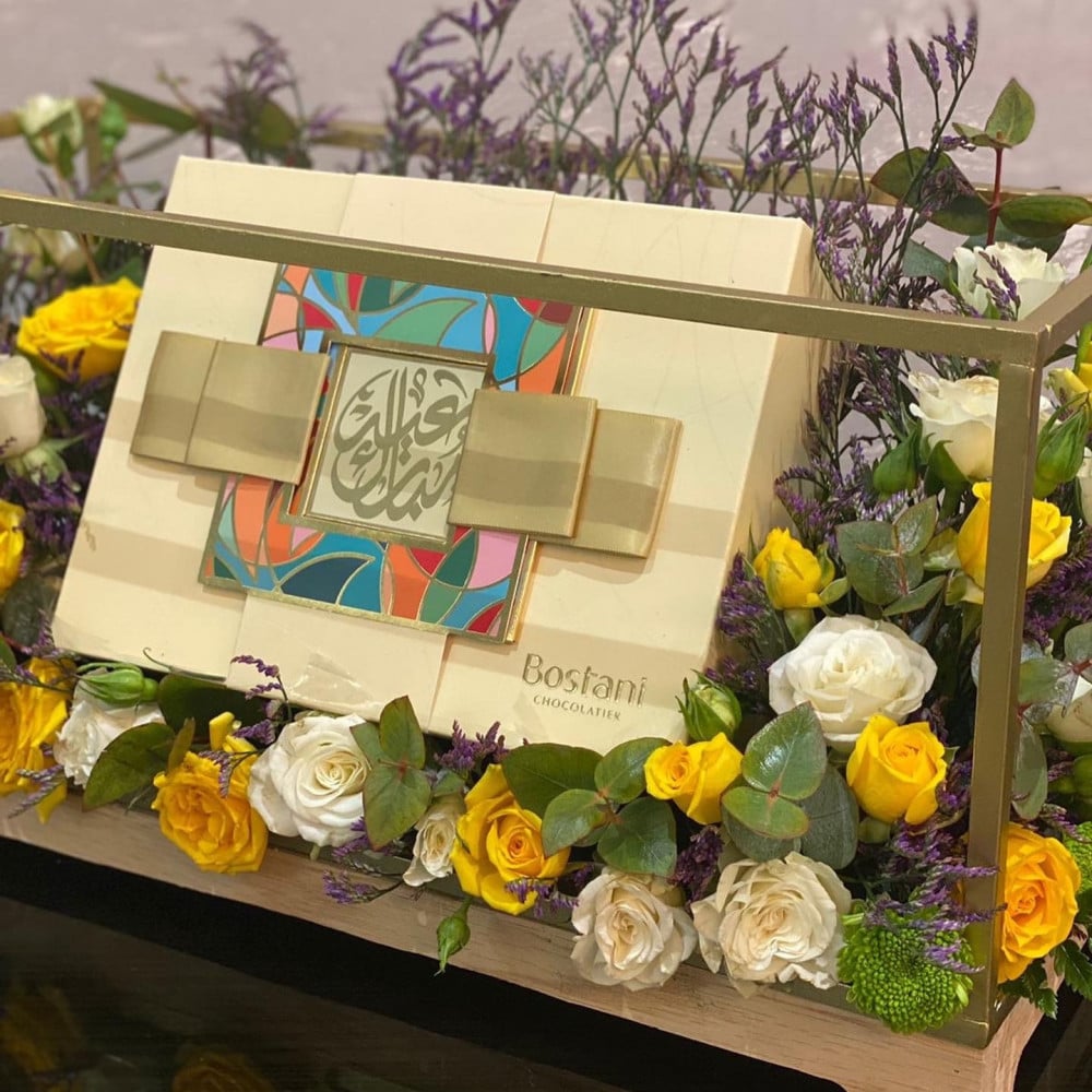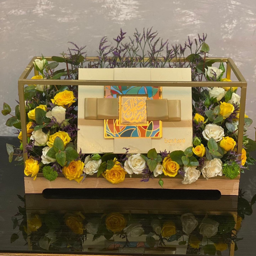 كرت مميز + طباعة عبارة بخط عربي فخم هدية مع الباقة