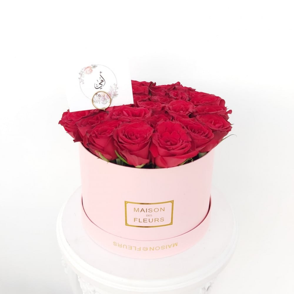 باقة مكونة من 30 ورد جوري أحمر واكسسوارات خضراء من الاوكاليبتوس ذو الرائحة الزكية. تغليف هذه الباقة فخم ومعقد باللونين الأسود والفضي، تم تنسيقها على يد أفضل منسقي زهرة لاريس.