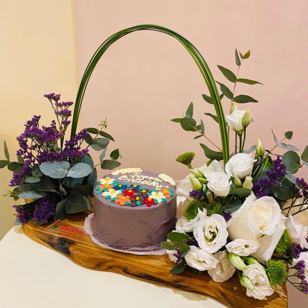 ورد مع كيك حسب الطلب والمناسبة